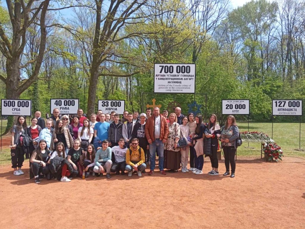 30 ученика наше школе, у пратњи директора и 10 наставника, присуствовало је дана, 23.4.2023. године у Доњој Градини, централној манифестацији обиљежавања Дана сјећања на жртве усташког злочина у концетрационом логору Јасеновац и његовом највећем стратишту, Доњој Градини. Био је то један велики и веома важан, историјско-вјерски час за све присутне.