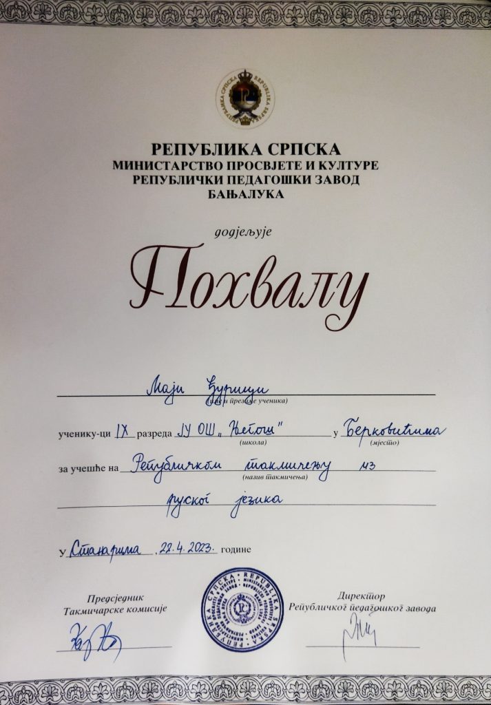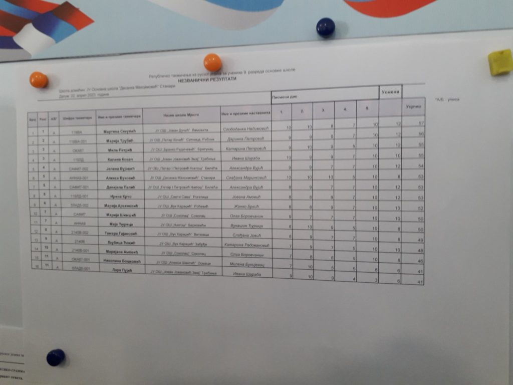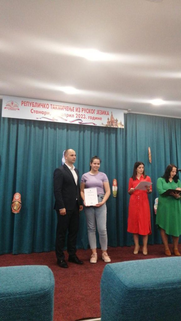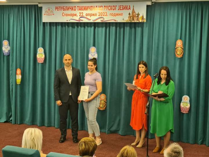 Дана, 22.04.2023. год. у Станарима је одржано Републичко такмичење из руског језика за ученике деветог разреда. Наша ученица освојила је 7. мјесто. Честитке нашој ученици и наставнику, Вукашину Ђурици.